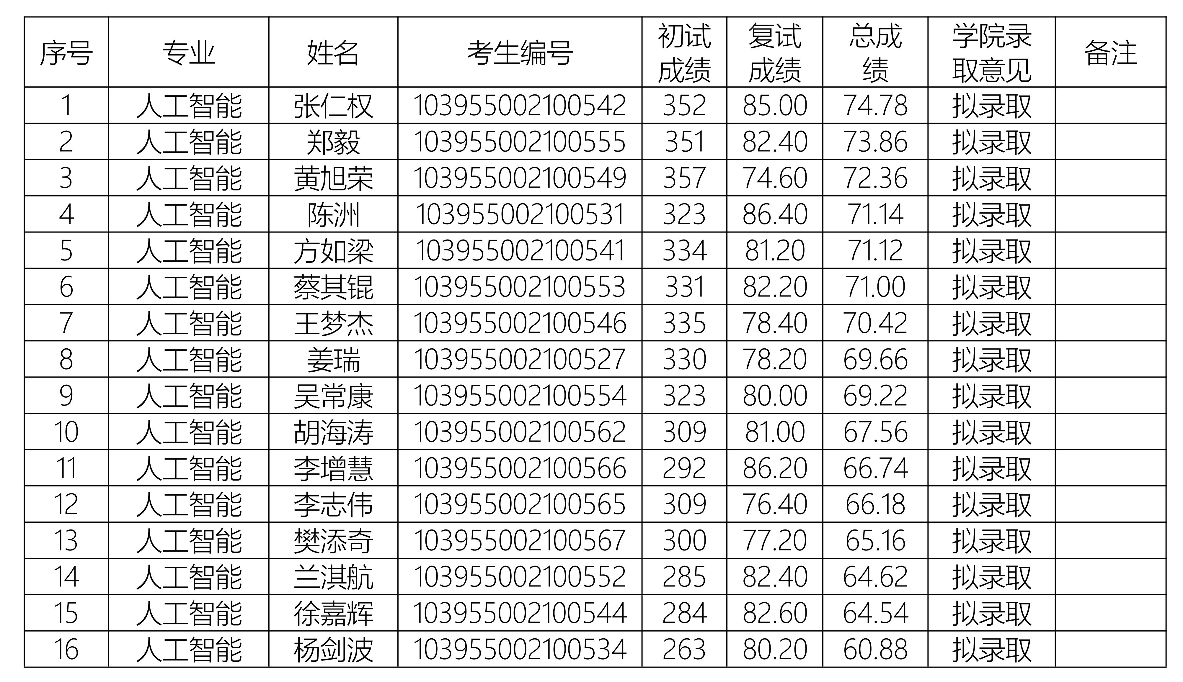 根据《WilliamHill中文官方网站计算机与大数据公司2025年硕士研究生招生复试调剂录取实施细则》,公司于2025年3月30日对以下考生进行复试,复试结果如下:
