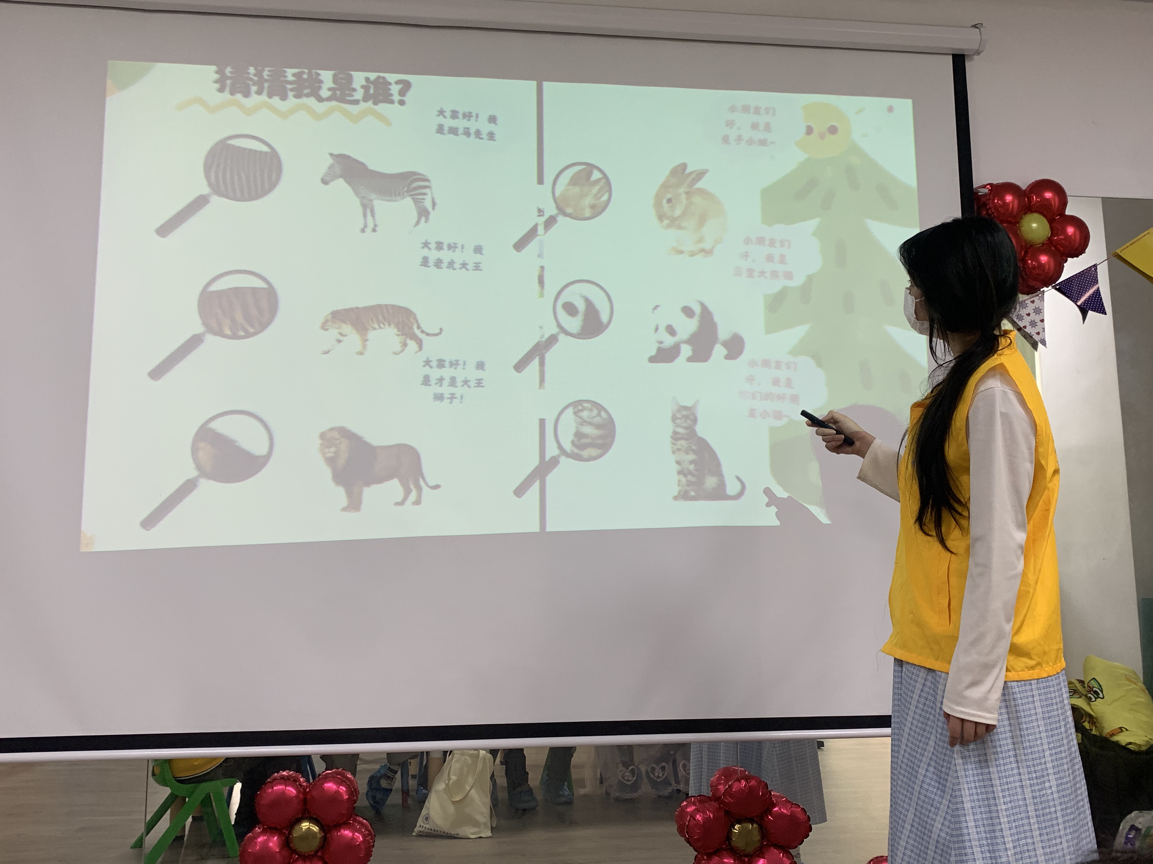 活动现场,志愿者老师化身“动物科普大使”,通过生动形象的图片、有趣的动画视频,向白血病小朋友们介绍如何通过小动物的栖息地给它们分类,与小动物们的习性与特征。“小朋友们,你们知道为什么小鱼可以在水里面呼吸吗?”“企鹅属于鸟类哦,是特殊的水陆两栖动物!”一个个有趣的问题和知识激发起孩子们强烈的好奇心。此外,志愿者还带来了动物猜猜看、动物小分类等游戏挑战,邀请小朋友们一起认一认同时用口语表达出小动物的特点。在轻松愉快的氛围中,孩子们了解许多可爱的小动物,感受到了动物知识的魅力。